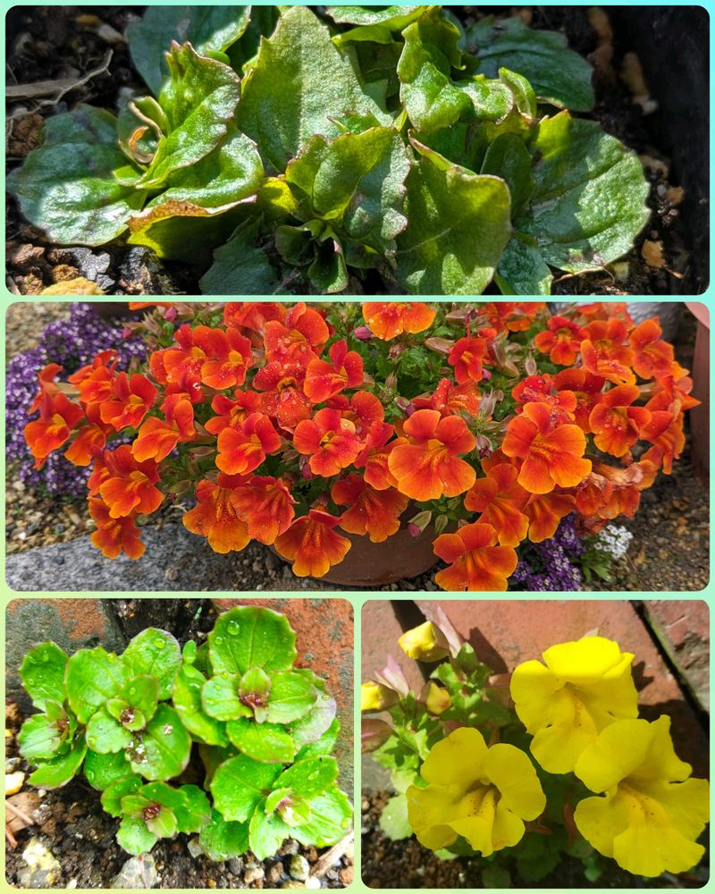 ミムラスとは思うのですが、買った苗、こぼれ種から生えているポットの苗と似ているようで違うから、思い出して過去のフォトを 引っ張りだしたんですよ😜