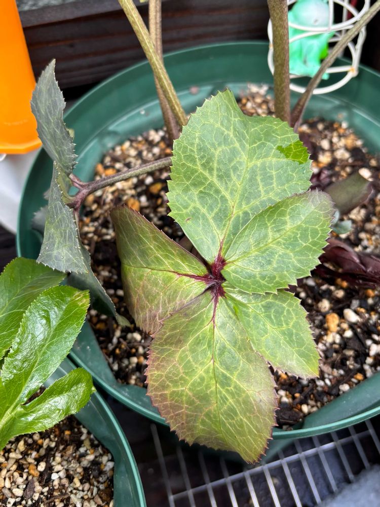 葉っぱのつけ根と縁が赤になってる