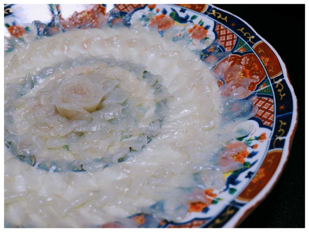椿柄の大鉢に薄~く切った身で、椿のうに並べています(^_-)-☆