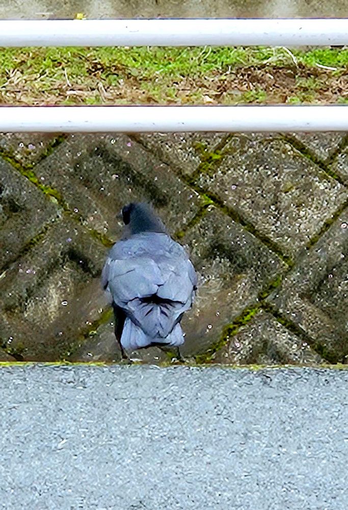 5️⃣ワタリガラス(川を眺めている姿を後ろから…ソット...パチリ📱