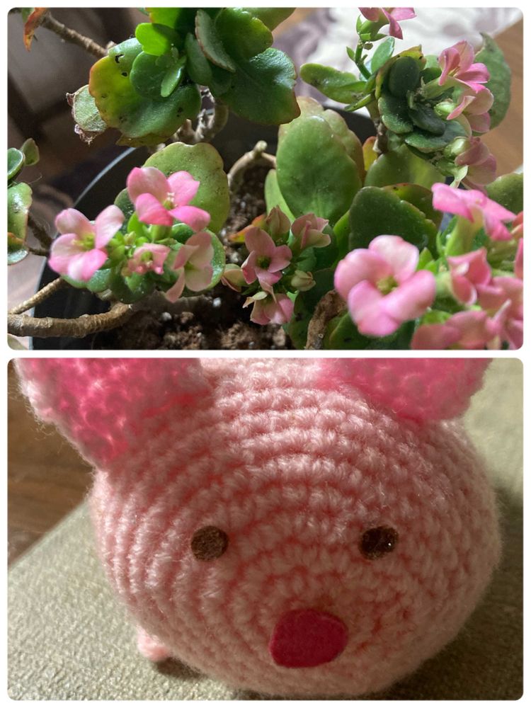 とっても可愛い手作りニットの豚🐷ちゃんとカランコエのマッチングが更に可愛らしさを表現されてて超可愛い!!になっていますねぇ🩷