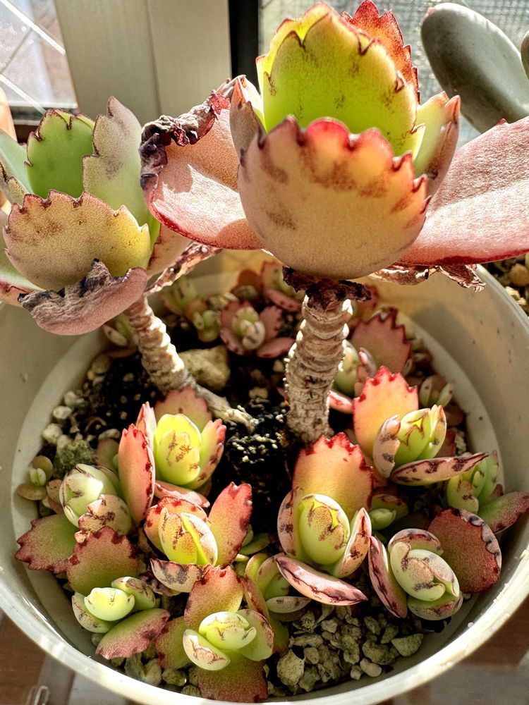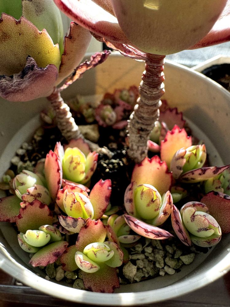 子宝草ベビーたち 落ちては成長👶小さなおててを合わせてるみたい👶可愛いです🤒寒さに弱いというカランコエ 早めに室内組