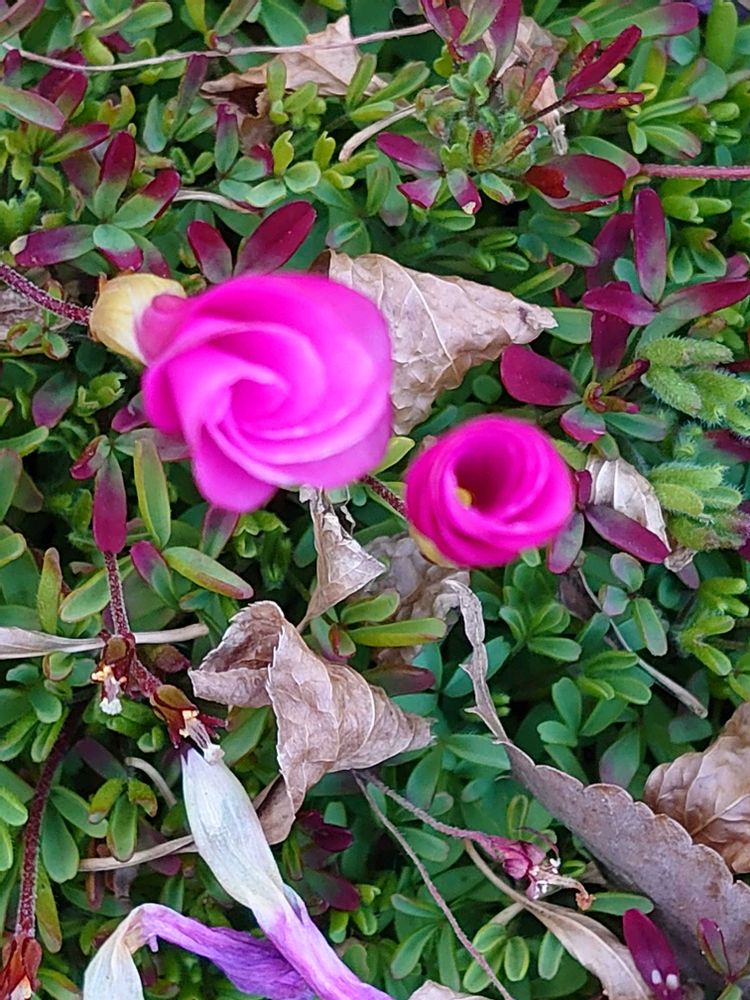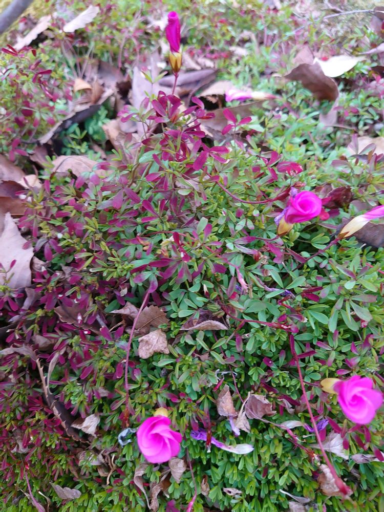 1️⃣2️⃣3️⃣オキザリス・桃の輝き🌸🐶🐶散歩で公園に行く途中で発見👀 投稿写真で見ていたけど本物は初めて見て興奮😤😍片手で上手く撮れず💦思わずリード2本足で踏んづけての撮影😆 葉も紅葉していて綺麗😍