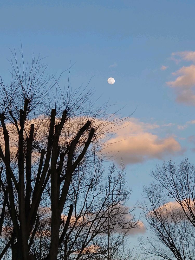 5️⃣夕方のまだ青い空に浮かぶ白いお月様🌕
