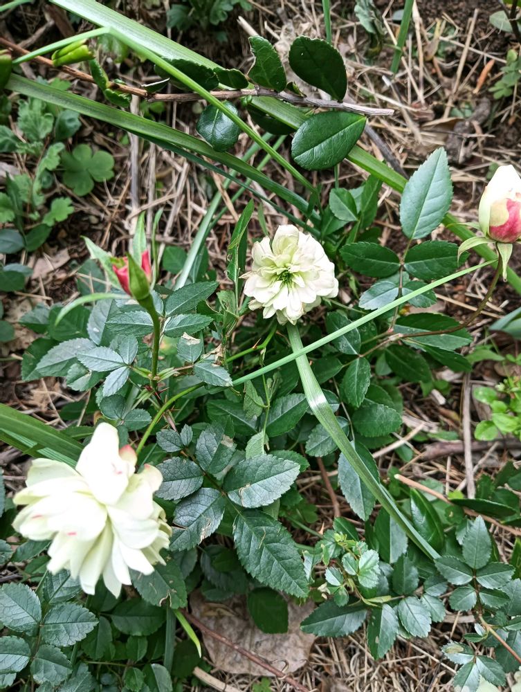 グリーンアイス(ミニ薔薇)、地植えして初めて知る。最初は赤い花い色が出るのね。