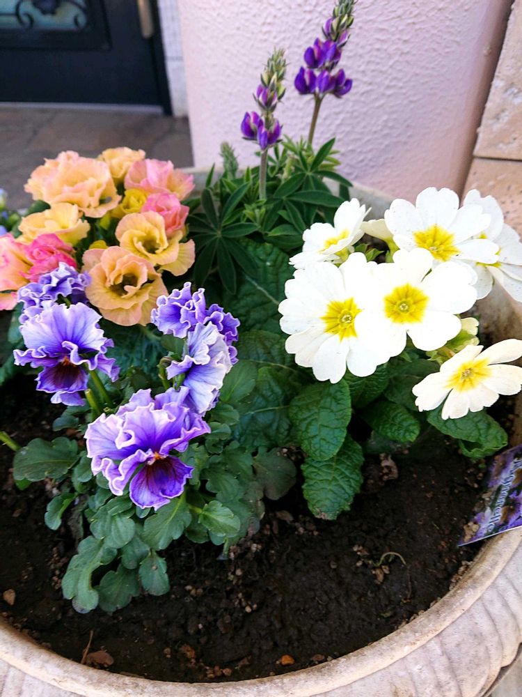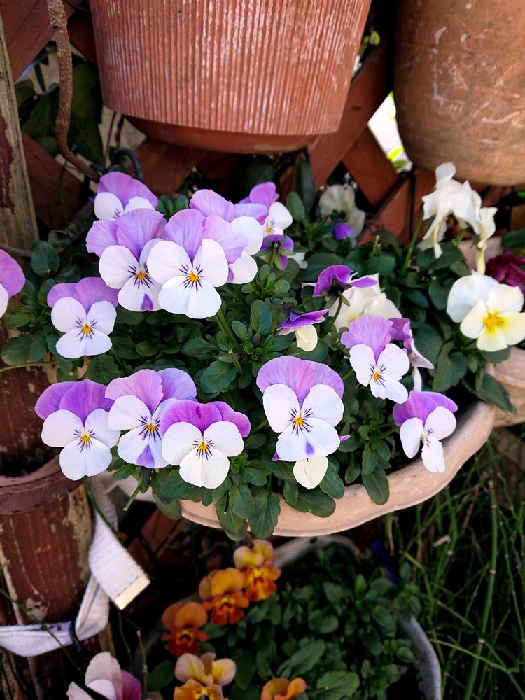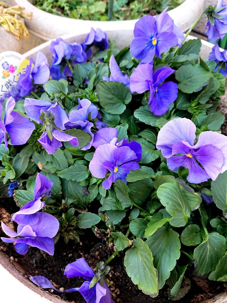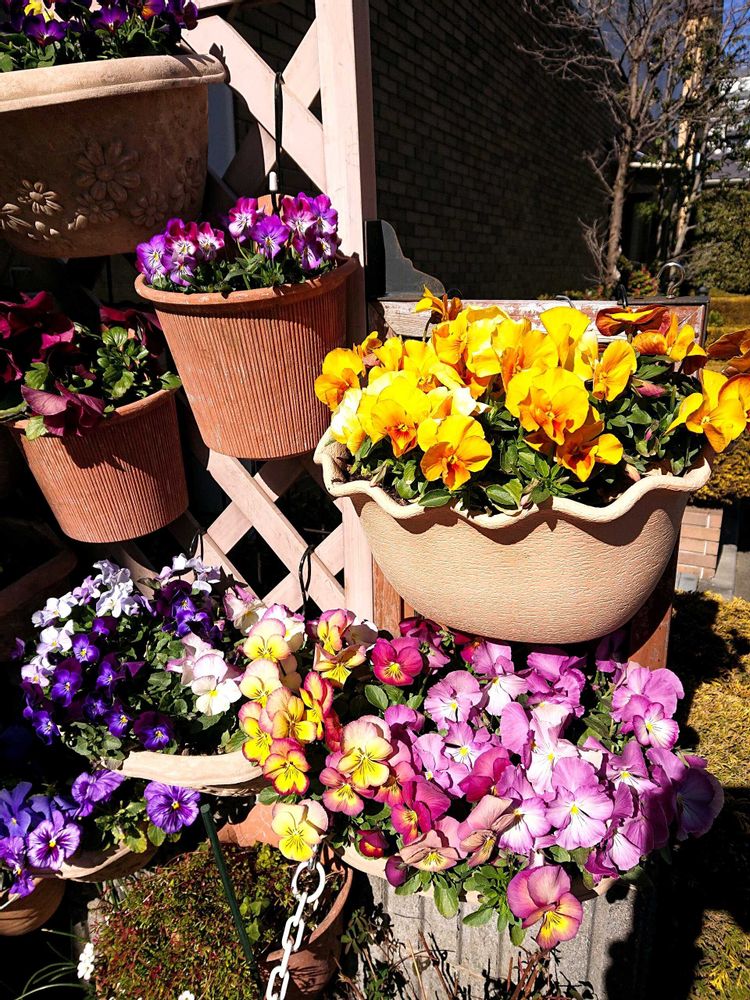 パンジービオラの寄せ植えどれも可愛くまとまっていいですね〜