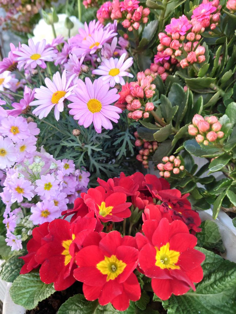 ベランダの真っ赤な「プリムラ・ジュリアン」と仲間たち🌿💕