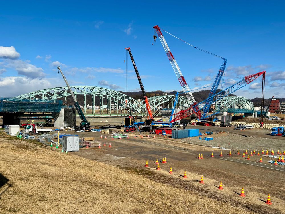 なんと架け替えるのに、今までの橋はそのまま横にずらして歩行者用の橋として移設保存するんですね。