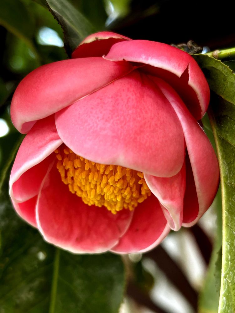 花弁が分厚く、蝋細工のようで、和菓子にも見えるローズピンクの大きな花