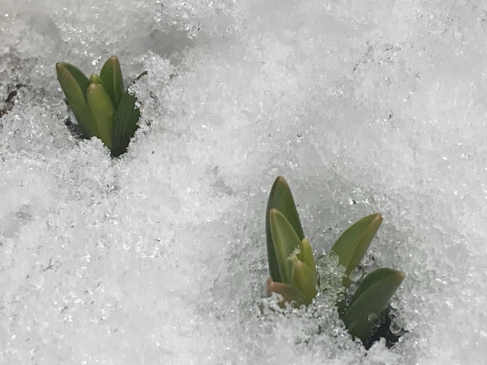 雪の下にムスカリの芽を見つけたり…クリスマスローズの小さな蕾を確認したり…雪に埋もれた庭での唯一の楽しみです♪