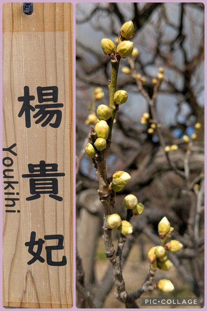 梅の楊貴妃はピンク色のお花ですが、蕾の時は白いのですね😳。いつも梅見が終わる頃に咲きます。🌞✌️