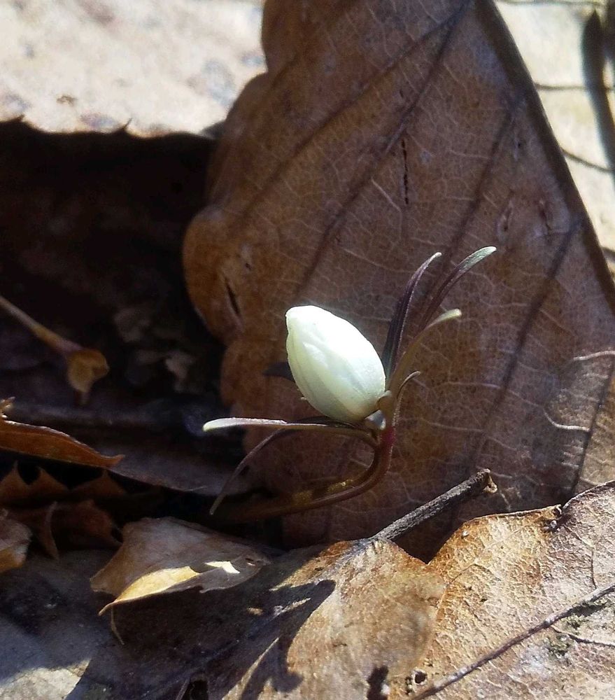 毎年節分には咲き始める市川三郷町のセツブンソウを、見に行ってきました。厚く積もった落ち葉の中に、可愛い真珠のような蕾を2つ見つけました💕