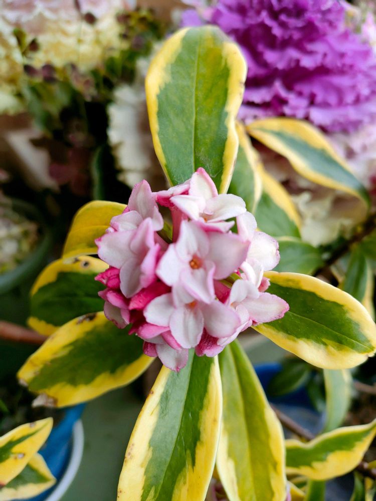 斑入りの葉も沈丁花で見掛ける事なくて、良い香りが感じる1枚ですね