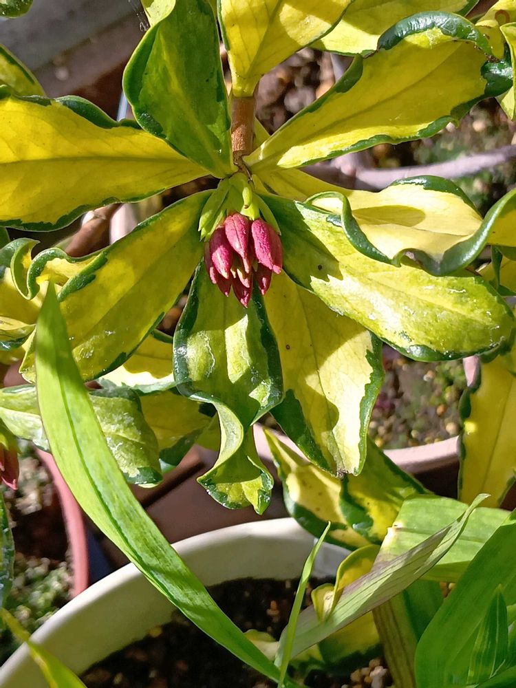 今年の斑入り沈丁花信濃錦さんの蕾です。もう少しで、開花します。今年も、沈丁花の香りで、癒やされたいで〜す。🥰