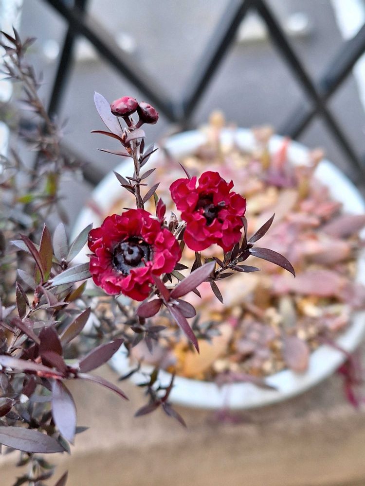 🔍️たら一重の白い花が原種で🍯をとり、これは真っ赤な八重の和名"御柳梅“でした😊