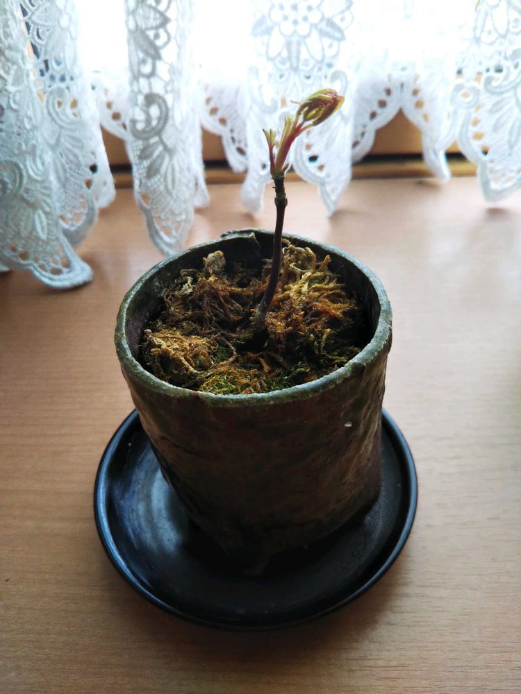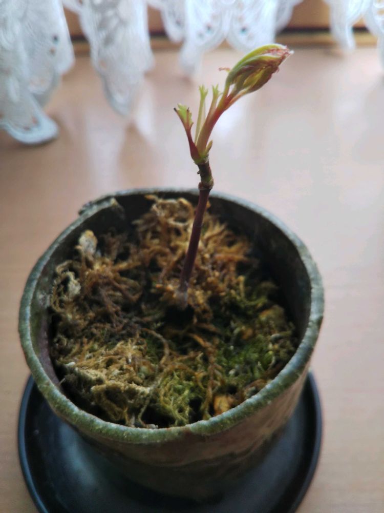 <地道投稿>1️⃣2️⃣3️⃣出窓に置いてます、お隣飛来「紅葉」の小鉢、新芽🤗出てきました。ちなみに朝方12度(出窓の温度 北西置場)でした😊「めんこいのぅ〰️👶」4️⃣朝方降雪は0cm「カマキリの卵」は地上約50cmの所、今だ雪かからず❗️流石予報士です🙇羽化を見てみたい🙏😀