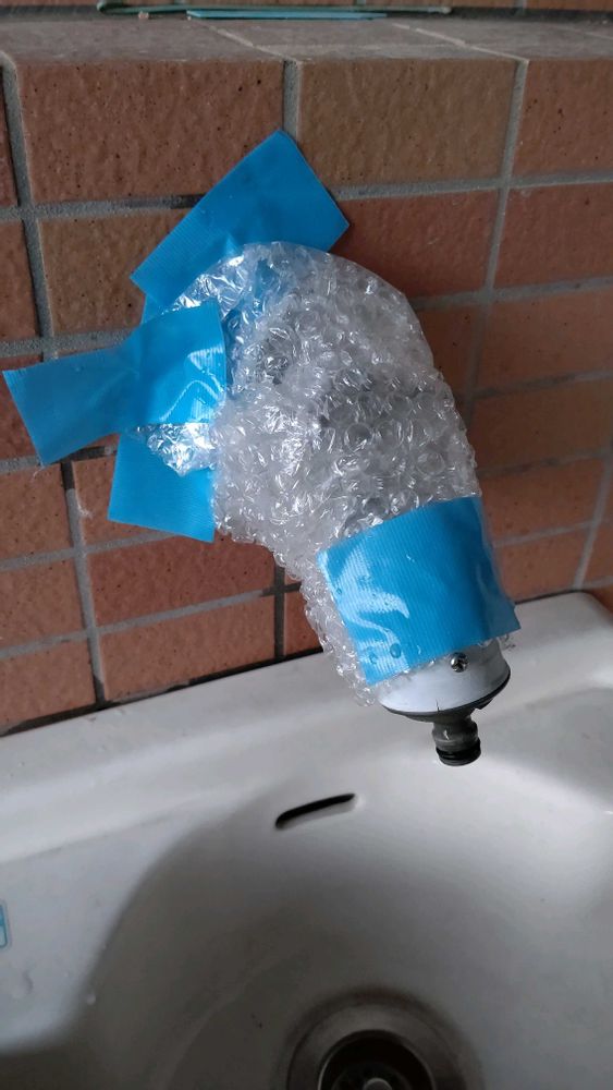 1⃣ベランダの蛇口にプチプチを巻く