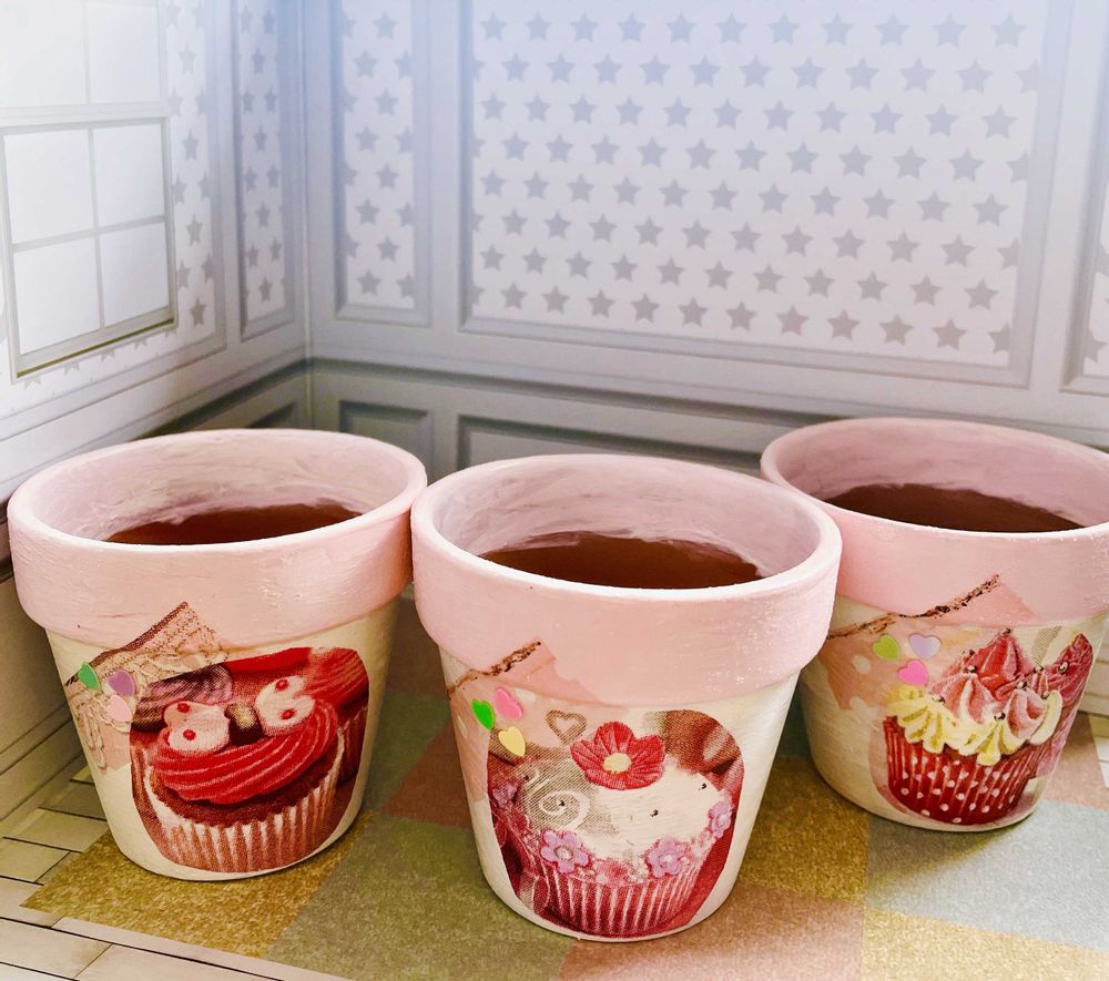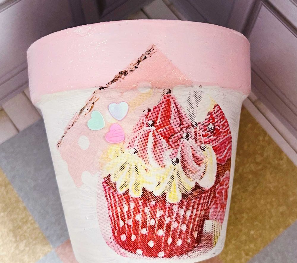 紙ナプキンをデコパージュしただけの簡単なものですよ。百均に、デコパージュ液売ってるのでそれでペタっと付けました。でも何か素敵に見えますよね💕︎