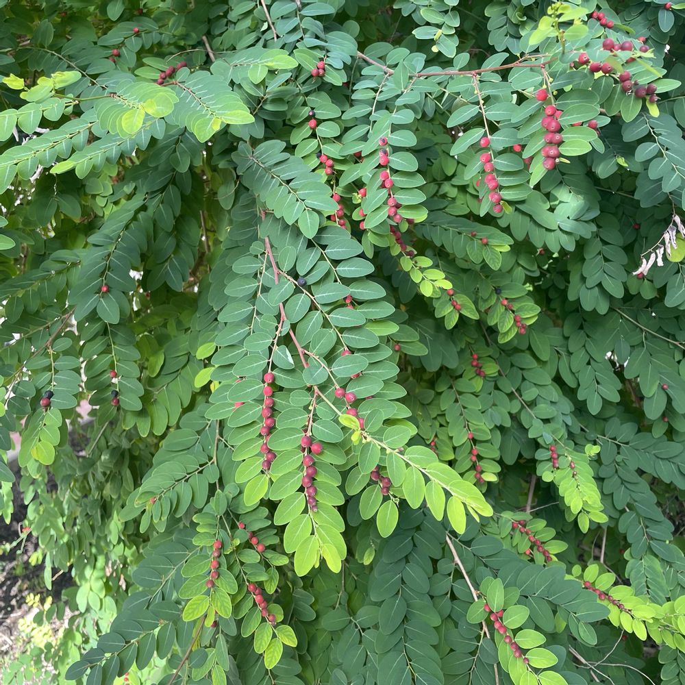 オオシマコバンノキ。赤い実と緑のグラデーションの葉が素敵