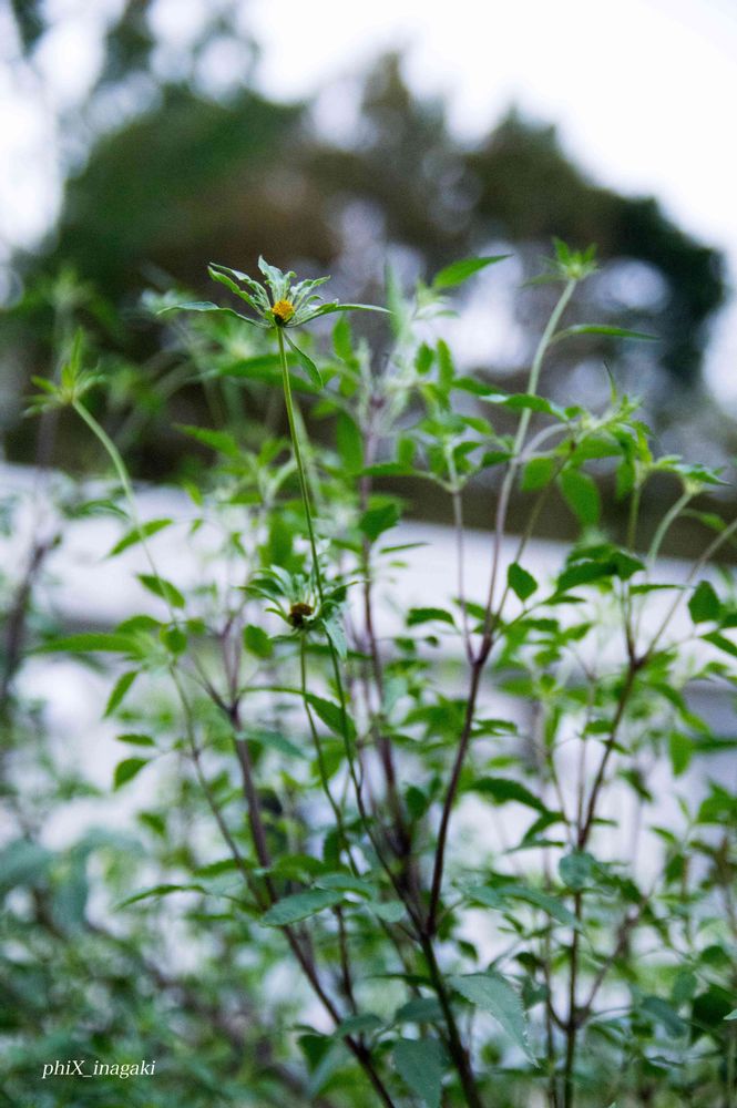 アメリカセンダングサが花を咲かせていました。いわゆるひっつき虫,セーターなんかに付いたら大変です。が,すでにこんなに伸びて花を付けています。今年、初目撃です。季節が確実に移り変わっていると感じました。