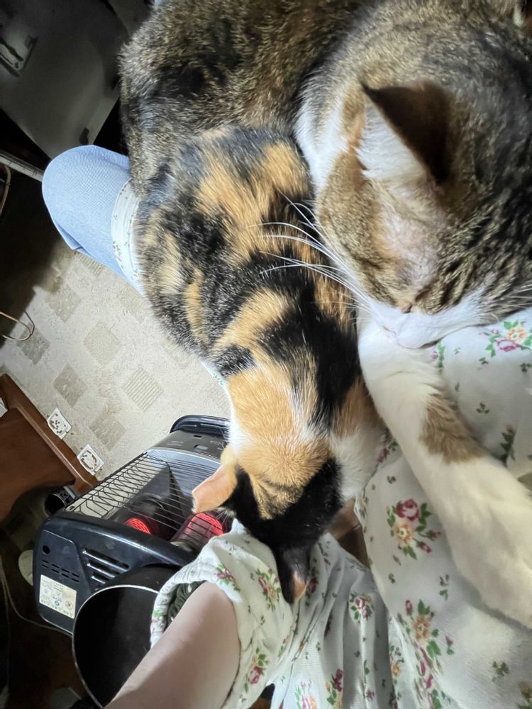 ❶ラナンキュラス エトワール✨✨メルカリで『…アッ、ポチッとな』😽❷座りごごち良くないはずだけど、母さんの膝の上の取り合いするニャンコたち🐾