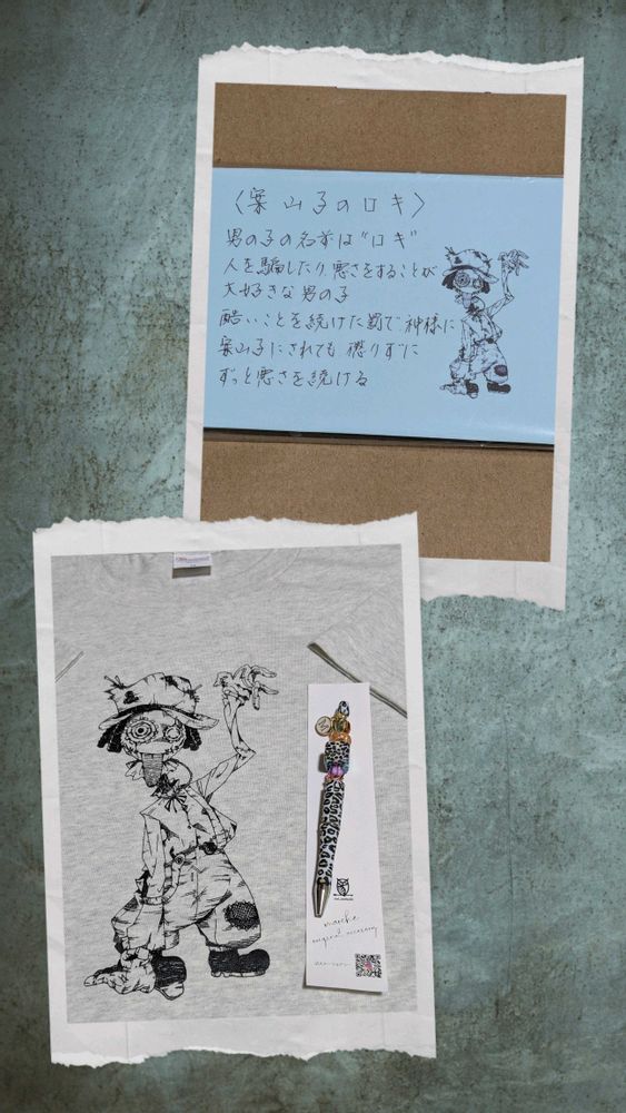 ②一目惚れのイラスト入りTシャツ・案山子のロキくんだそうです。