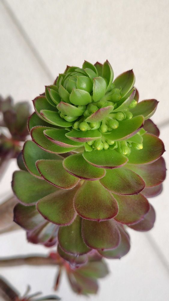 あまり日が当たらない屋根の下に置いているので緑なんだと思います。お花が咲いたらまた写真撮りますね📷️