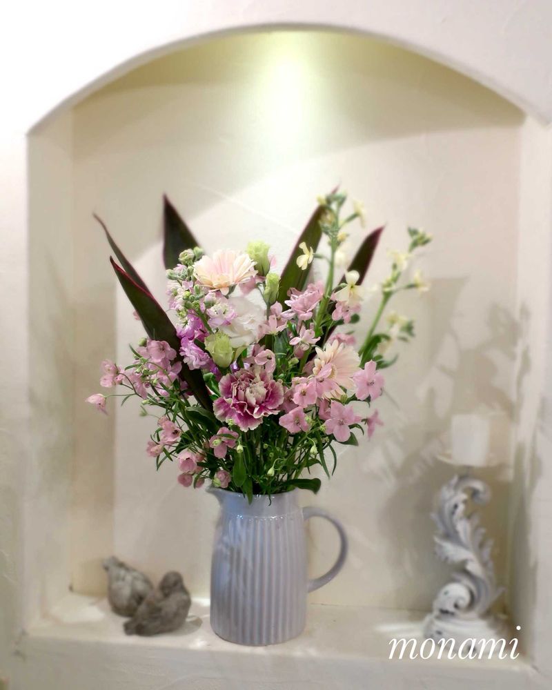 ウェルカムフラワーはすっかり春気分ですね💗淡いピンクがステキ✨