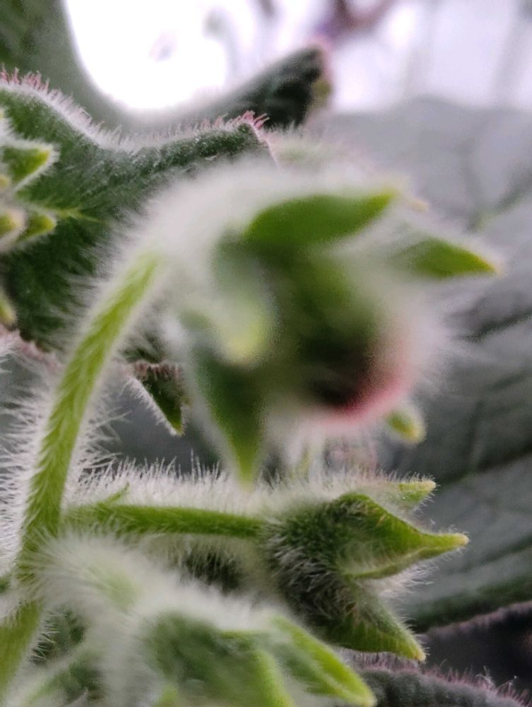 フワモコの毛玉の蕾が膨らみ赤味を帯びてきました
