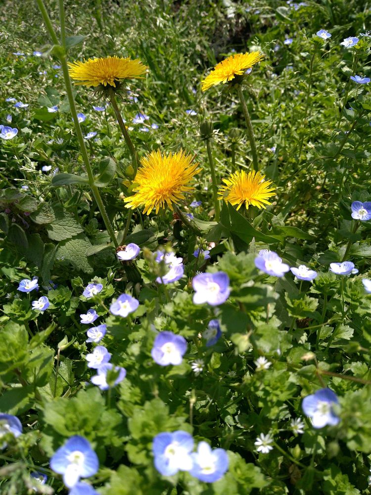 一昨年は梨畑がブルーに染まって本当に綺麗でしたが、昨年はたんぽぽの方が幅を利かせていました😅