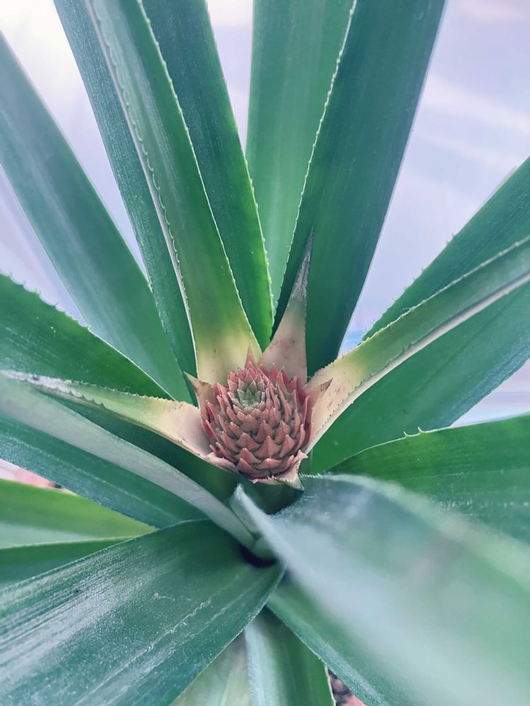 4年目に、やっとパイナップルの芽(?)が出てきた!って喜んでました😆
