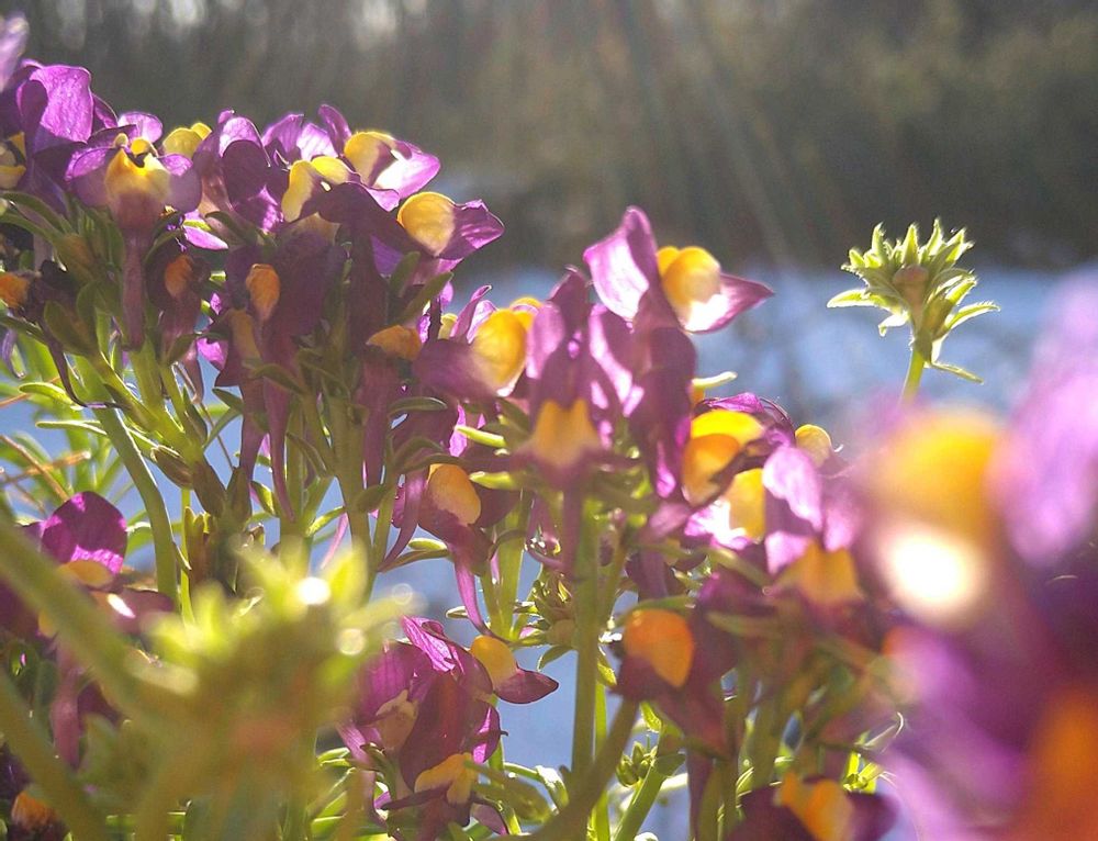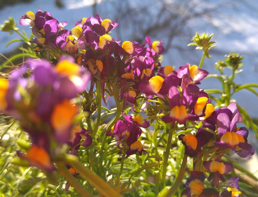 ベランダで外気浴のギョリュウバイとネメシアとラナンキュラス