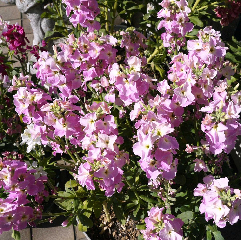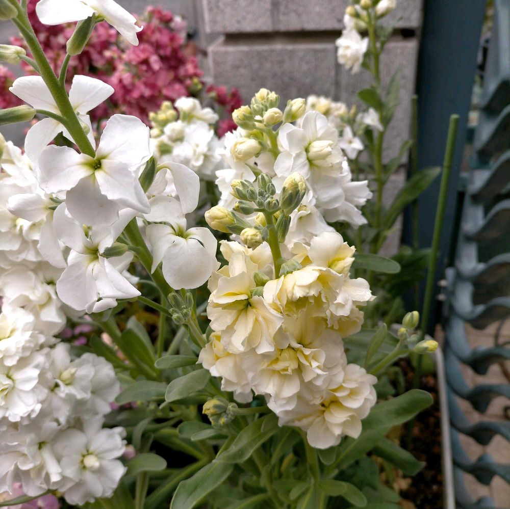 ストックの一重花は地味ではありますが、単色でまとめて植えるとこんなに豪華に見えます。大成功だったので今後も一重花は単色植えにしようと思いました☺️