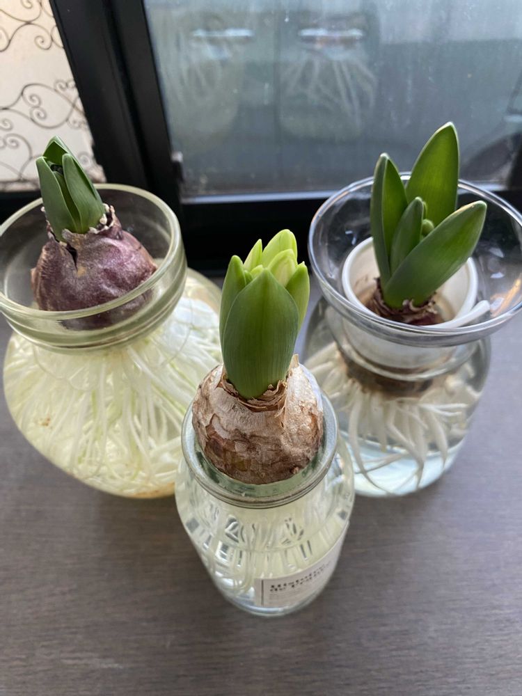 窓際のヒヤシンス3人娘🪻🪻🪻