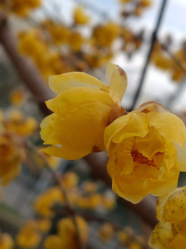 ロウバイがまだこんなにかわゆく😍咲いてるのねᐢ⸝⸝•⩊•⸝⸝ᐡ🩷