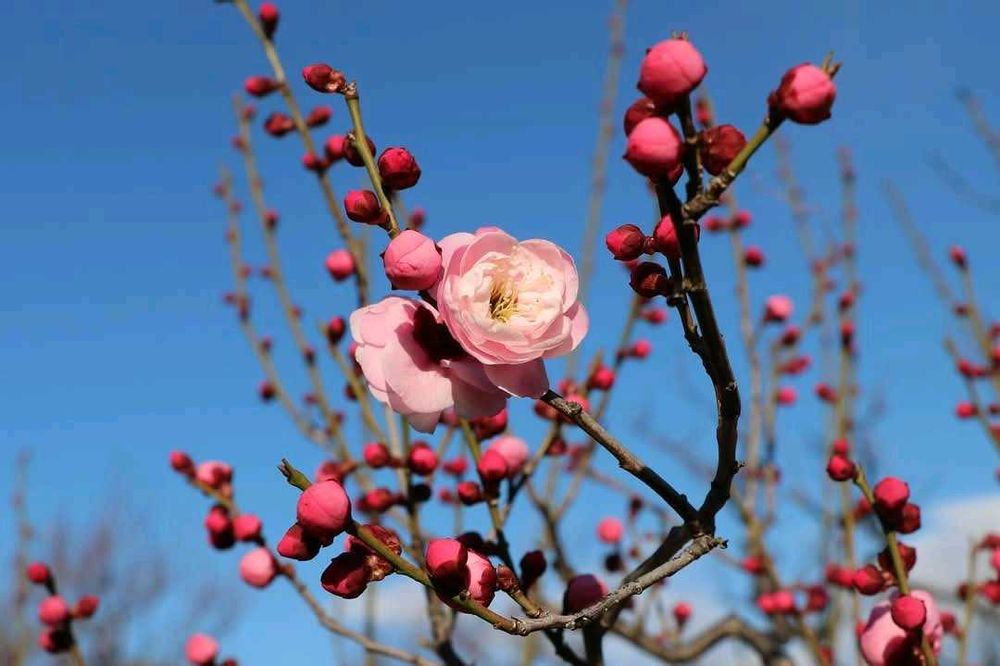 おはようございます😊可愛い紅梅の花、散歩中📱でパチリ🙋今日はデーサービスに行って来ます💞