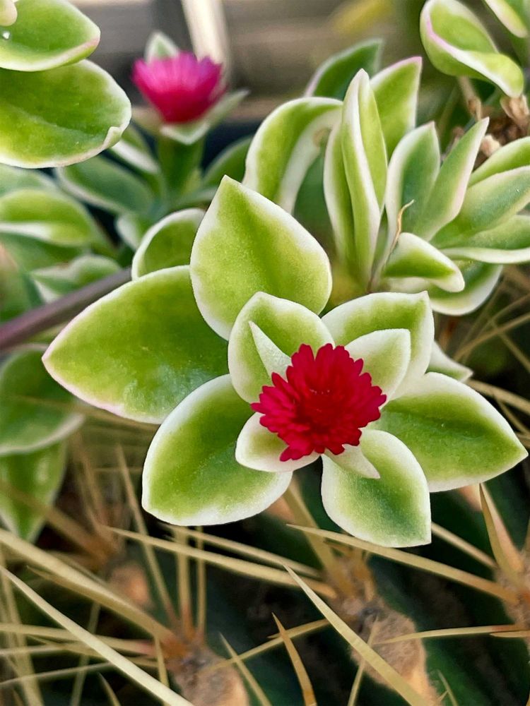 まん丸大きなサボテン・金鯱さんの頭状に絡みついてるベビーサンローズちゃん、、痛くないのかなぁ⁉︎😆