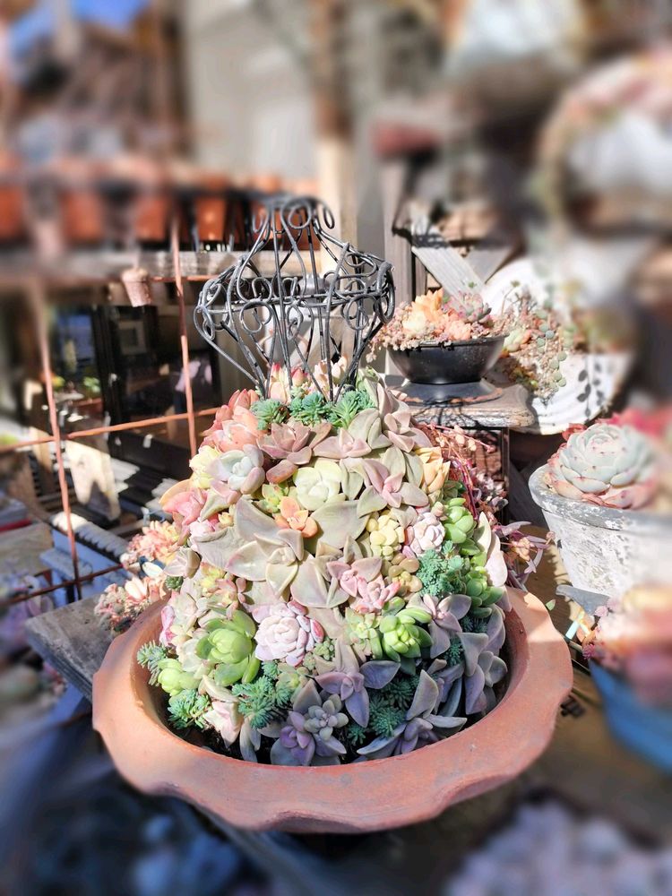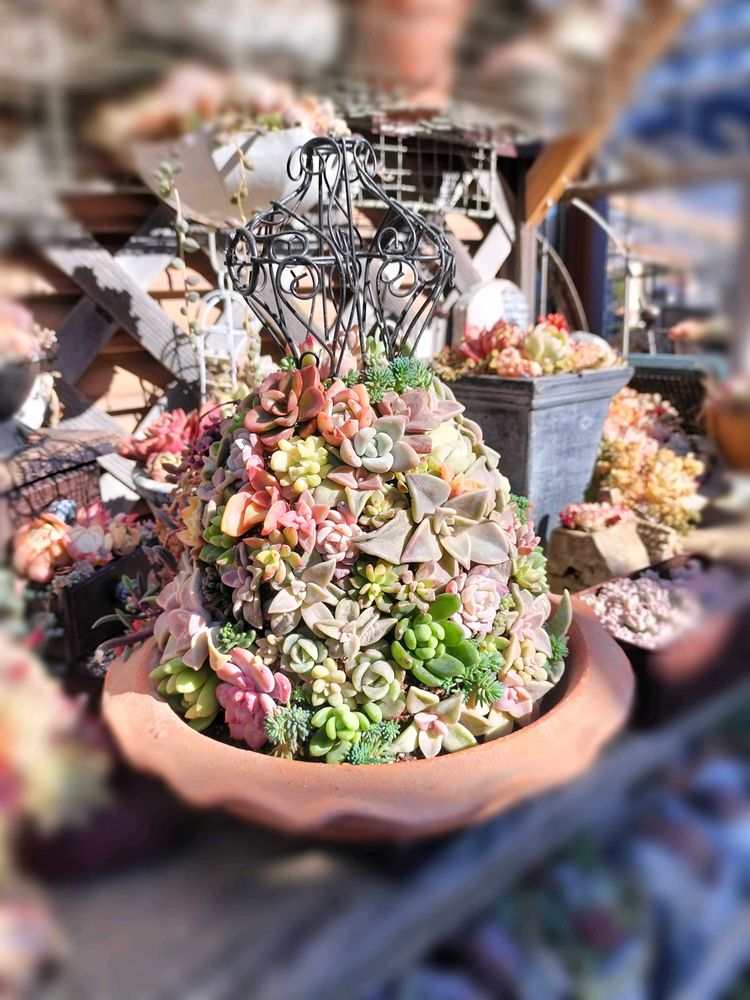 太陽光の下では多肉も輝いて綺麗に見えるから、まぁ及第点かなぁ〜