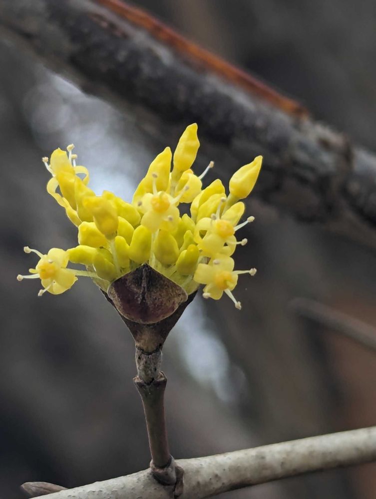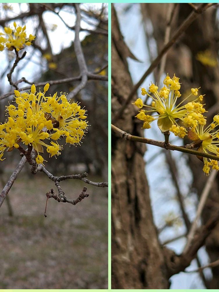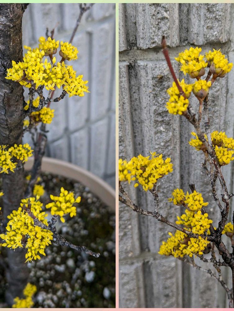 ①〜②昨年3月に植物園にて撮影のサンシュユの黄色いお花です🤳