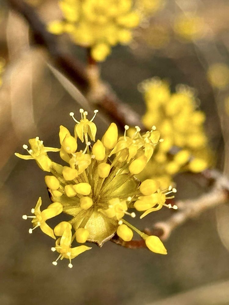 サンシュユは早春に咲くお花のなかで大好きなお花です🌼