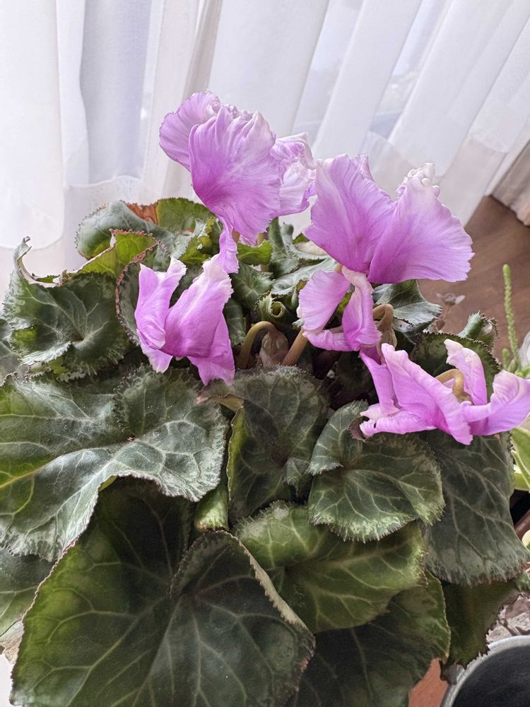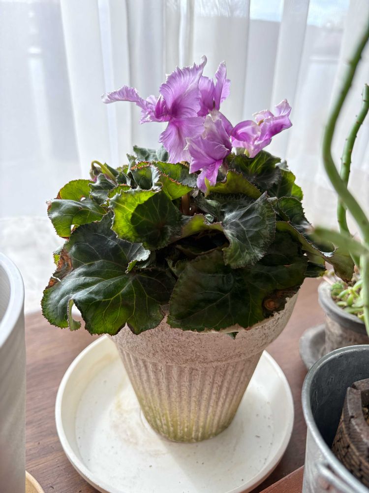 この子は寒がりのシクラメンだと知って慌ててベランダから取り込んで2週間過ぎました。3日ほどで蕾が上がり出し、葉っぱもふっくらしてきて美人さんに戻りつつあります。