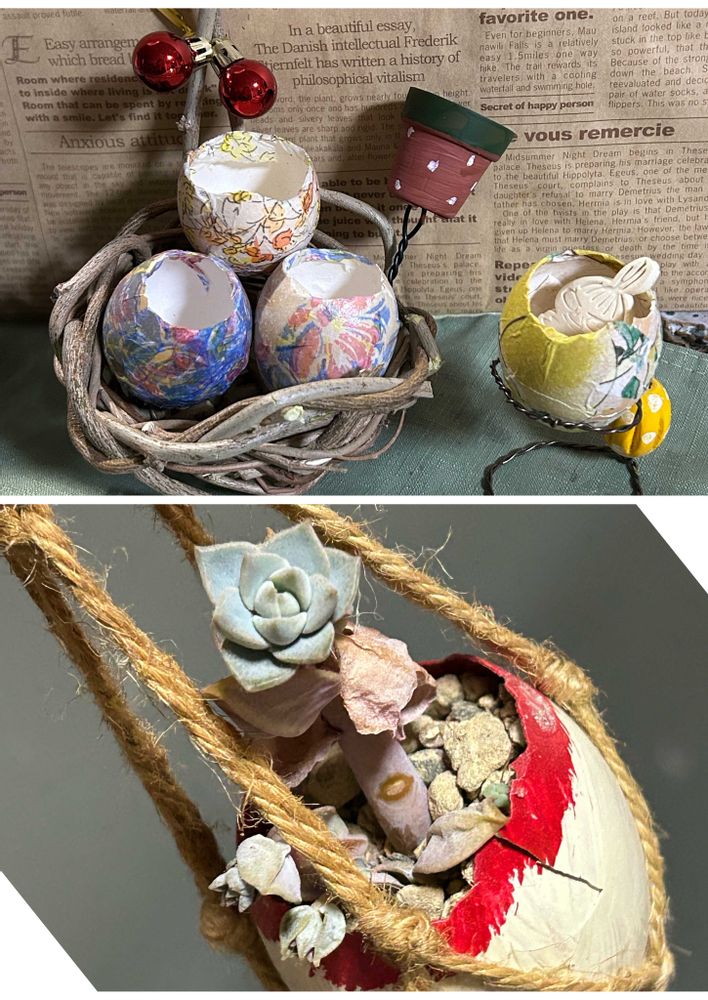 たまご鉢です。何年か前から作り始めてたまごの殻がたくさんあったので作りました。時間がなくて植えてる多肉は以前植え付けたものです…