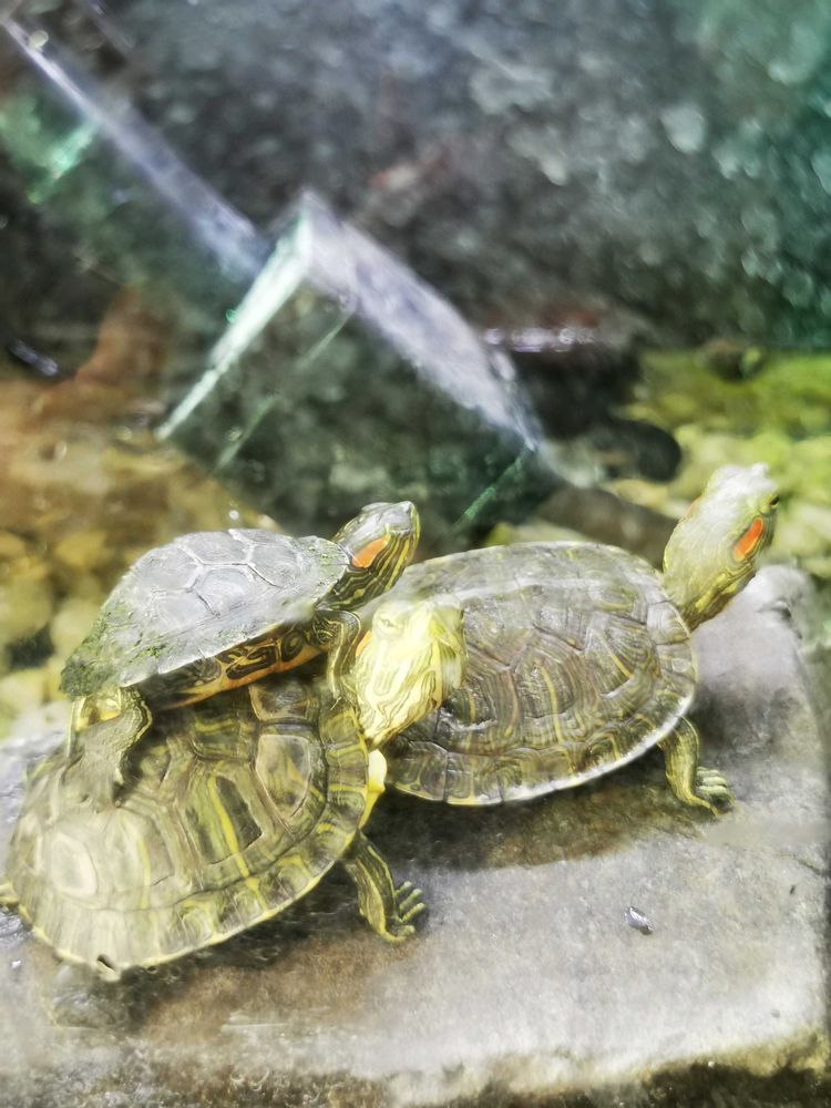 亀が三匹、その歌(親亀の背中に子亀を乗せて〜🎶)を思わず、くちずさみます。🥰🐢🐢🐢