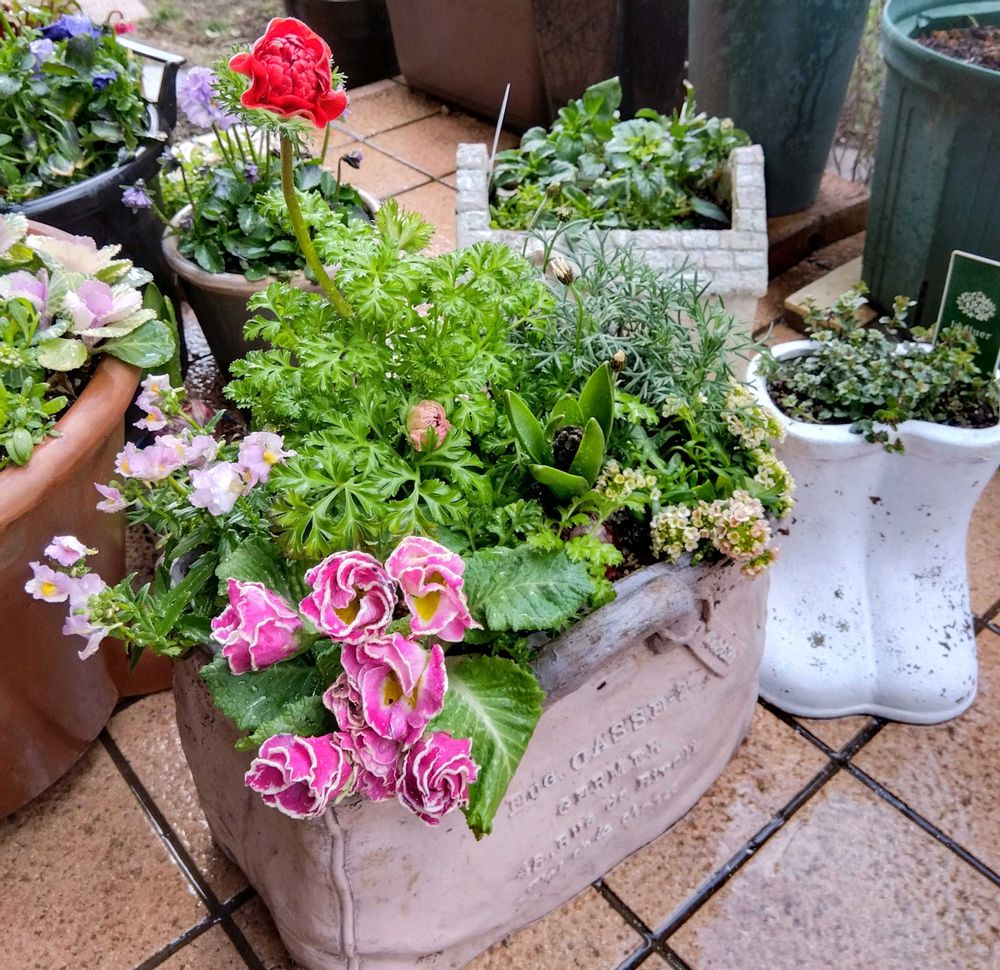 来週も寒さが戻るようなので寄植えしてしまいました🌸🌿