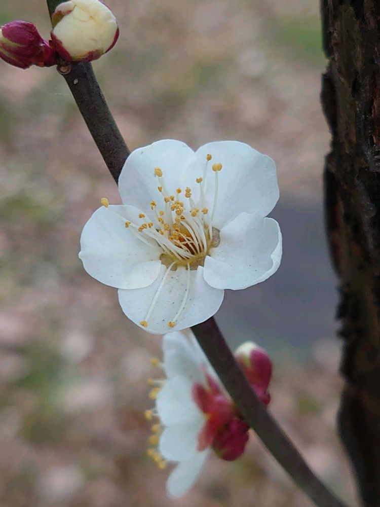 1️⃣白梅🌼🤍この木は咲き始めたところです😊 蕾が沢山付いていて楽しみです😊💕