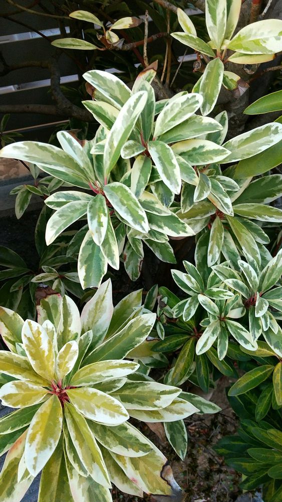 まるで絵画のモデルのような色合いの緑と白の混ざった葉。その姿が何よりも美しかった今日も身が凍えるくらいの寒さで風も強かったこんな寒さの中必死に生きる植物達を見て私は生命力の強さとたくましさを感じた。