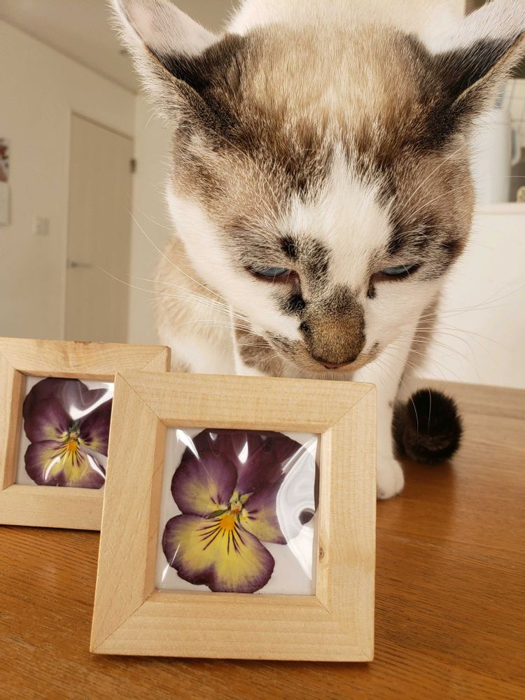 虹色スミレ(スイートラブ)がきれいに咲いているので、シリカゲルでドライにしてフレームに入れてみました。ぐっとシックな色味になりますが、これもまたきれいです。