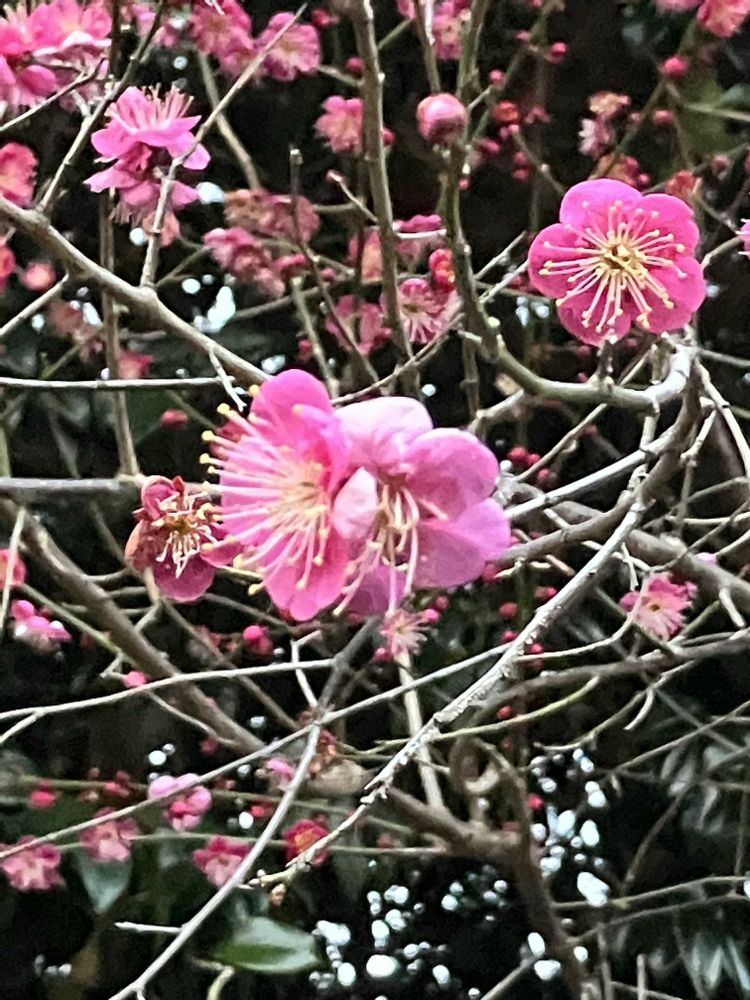 優しくて、慎ましく、そして華やかな梅、濃いピンクの蕊の美しさ、こちらにも香ってくるようです。