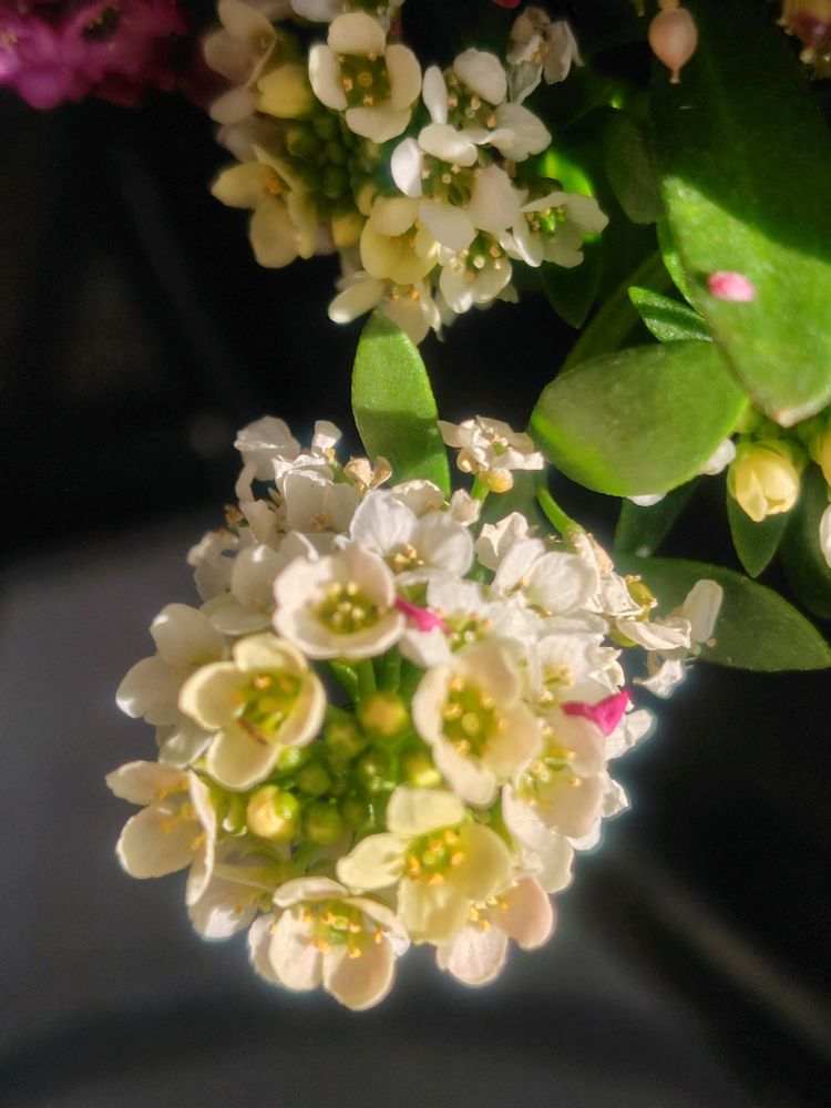 クリスマスローズの根元に、白い小さな花がヒラヒラ〜