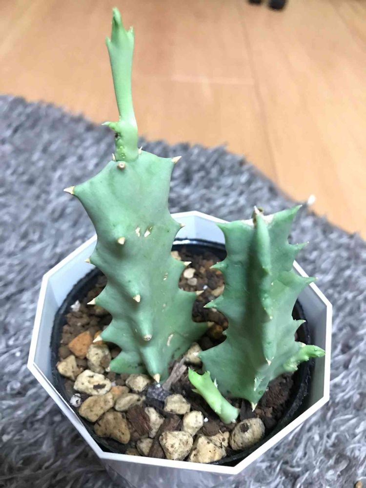 メラナンサにもう一つ真ん中に土からピョコンと子株(?)🌵が出ているのに昨日気付きました。いつも反対側から見ているから気付かなかったのです😅